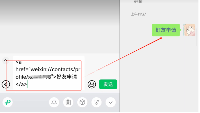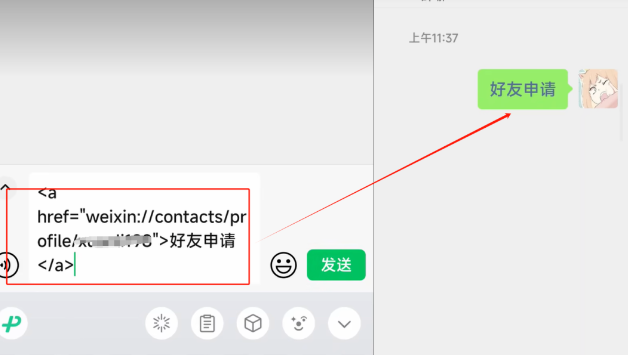 <a href="weixin://contacts/profile/微信号">好友申请</a>