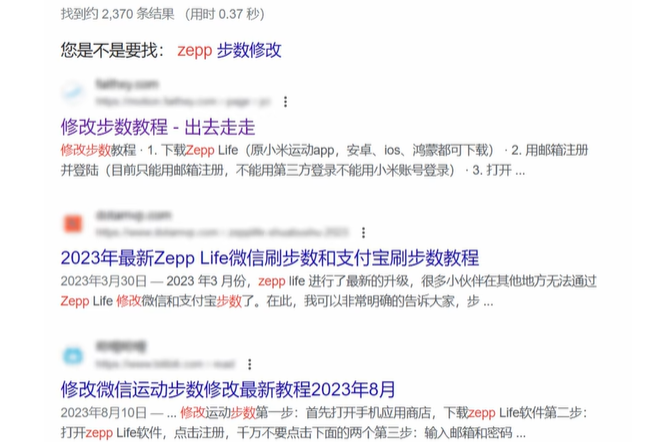 然后去网上搜:“Zeep步数修改”,就能找到很多的工具了,其实大家在运动列表中看到很多的人步数很多,其实大多数都是修改过来的!