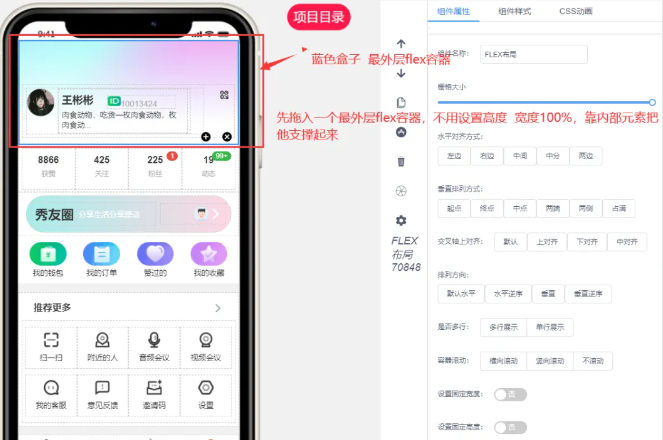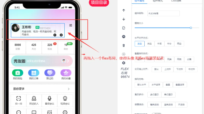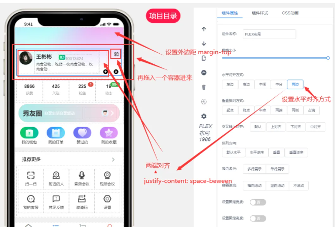 接下来,我们需要在第一个flex容器内部再拖入一个flex容器,并设置其水平对齐方式为两端对齐。这样,我们可以确保二维码和内部的flex布局在水平方向上保持对齐,使得整个布局更加美观、协调。