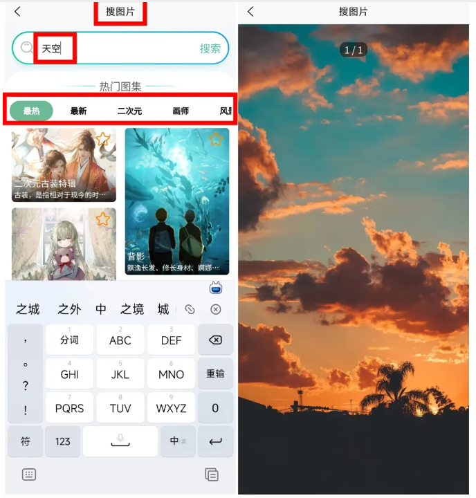 6、如果你想搜网盘资源,直接在“搜网盘”里输入关键词即可。另外搜图就用搜图片,长按可以保存到本地。