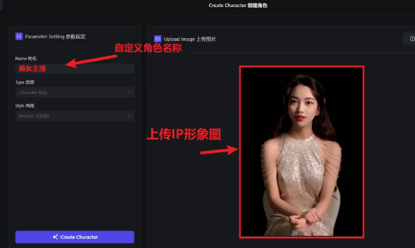 \然后上传一张IP角色形象图,自定义一个名称,点击创建即可。