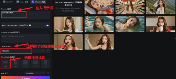 好了,建立形象后,我们可以通过各种场景的提示生成这个美女的各种视频。