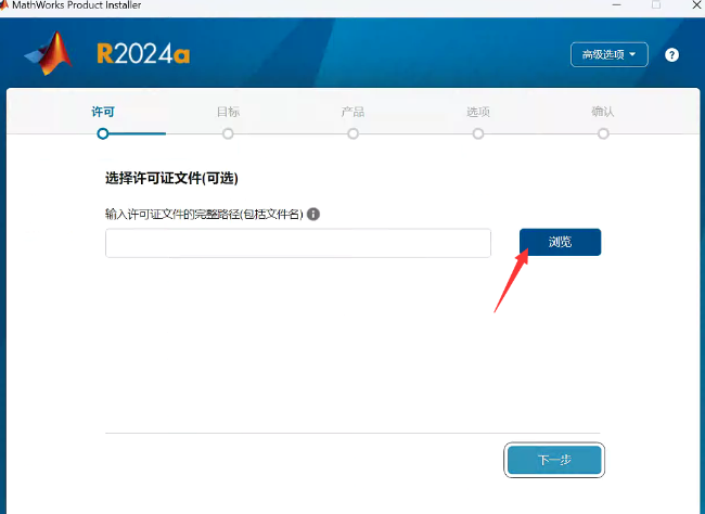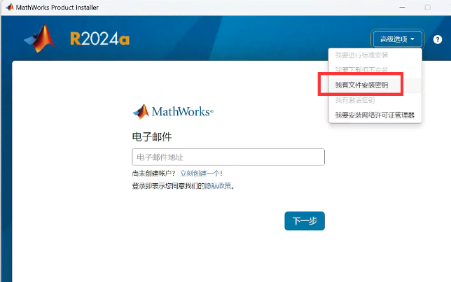 4.点击【高级选项】选择【我有文件安装密钥】。