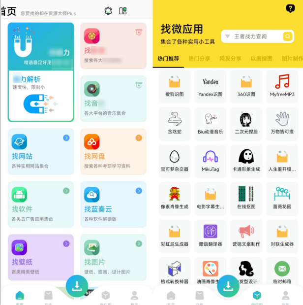 软件的所有功能都在首页中,比如,我们可以找网站、找应用、找图片、找PP、找头像等等…简直就是百宝箱,一个软件涵盖所有!