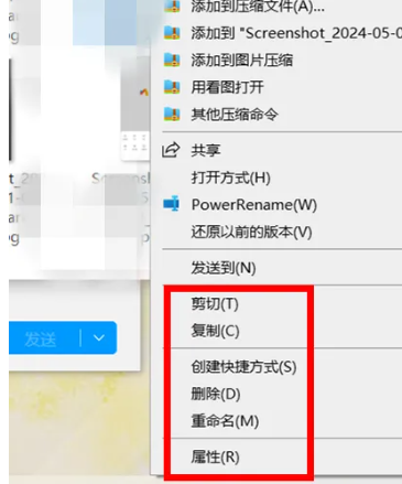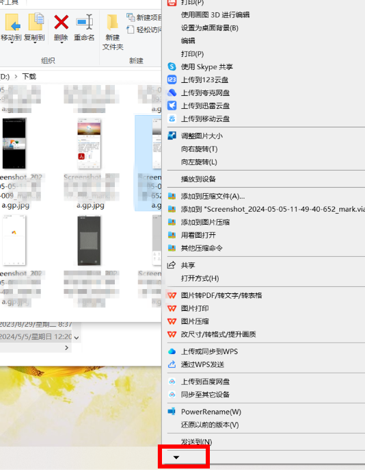 但有时候我们装的软件多了,可能不注意很多软件都会要求添加到鼠标右键选项中,其中很多是没有用的,这就会导致多了以后,选择自己想要的功能非常麻烦。就像我每天写文章,需要对文档或图片就行重命名,我的重命名就会挤到了非常靠后的位置,甚至需要点击向下的菜单,才能找到重命名。如下图: