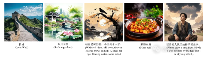 首先,中文元素理解:混元-DiT不仅支持双语生成,而且在理解中国元素上有着显著的优势。无论是中文的成语还是中国传统文化,如古诗文,这款模型都能精准捕捉其精髓,并在生成的图像中完美呈现。