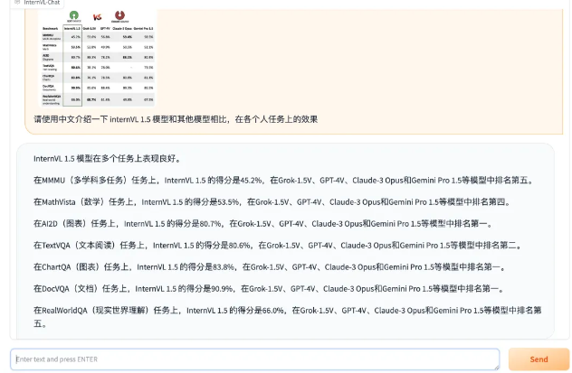 InternVL 由 OpenGVLab 开发,是一个开源的多模态对话模型,其性能接近商业化的 GPT-4V 模型。