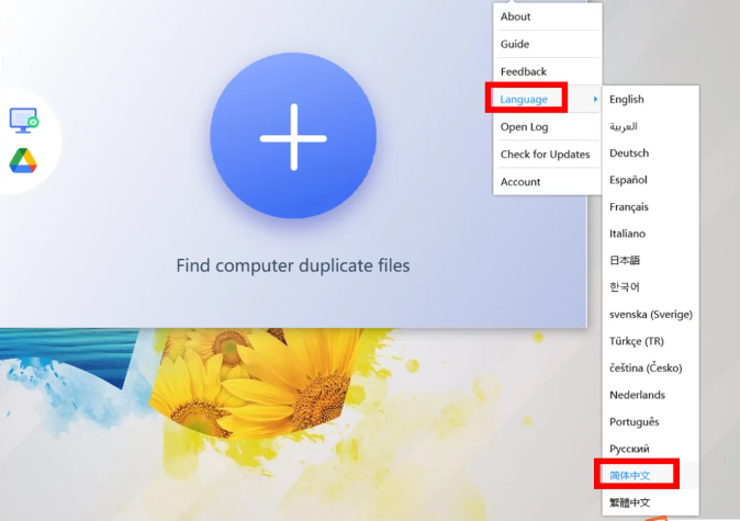 2、打开后先点击右上角的菜单按钮,在语言里选择“简体中文”。