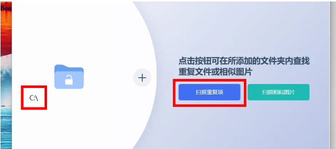 3、选择好想要扫描的磁盘,比如C盘,然后点击扫描重复项或者相似图片。