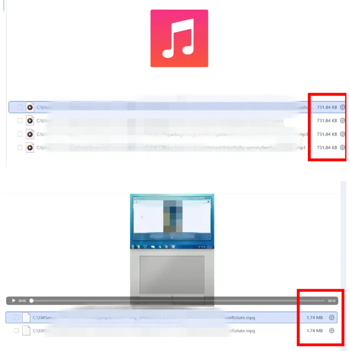 7、另外还有音频、视频等重复文件,找到后,都可以删除。