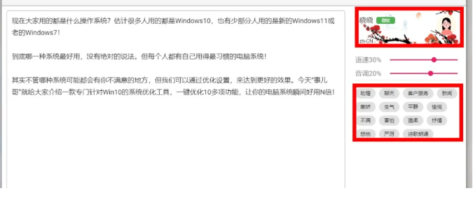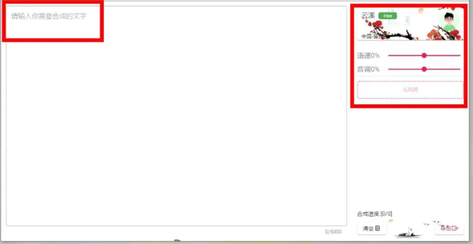 2、打开后,可以看到工具界面非常简洁。在左侧,输入您要转换为语音的文本,在右侧,您可以选择发音字符、语速和语调。