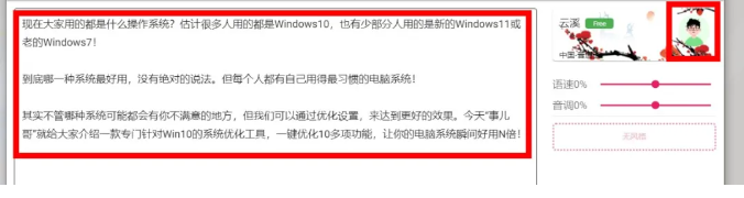 3、这里我先把文字粘贴进去,然后我们需要注意如何切换扬声器