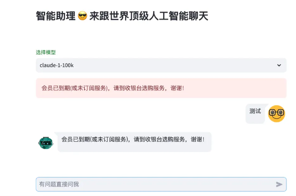 3 选择模型并输入问题,不出意外的话,会提示上图中的错误信息,原因是高级模型,还是要收费的,只是比官方更便宜而已。