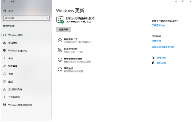 这个时候,大家就可以直接在在系统的Windows更新里,可以看到系统更新是正常的