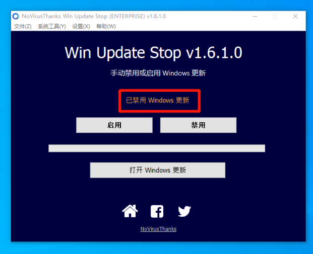 软件还会显示系统更新状态,如果已经禁用更新,则会显示“已禁用Windows更新”。